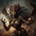 The Troublemaker with her demonic hobgoblin form holding a humanoid skull.jpg 1,024 × 1,024; 230 KB